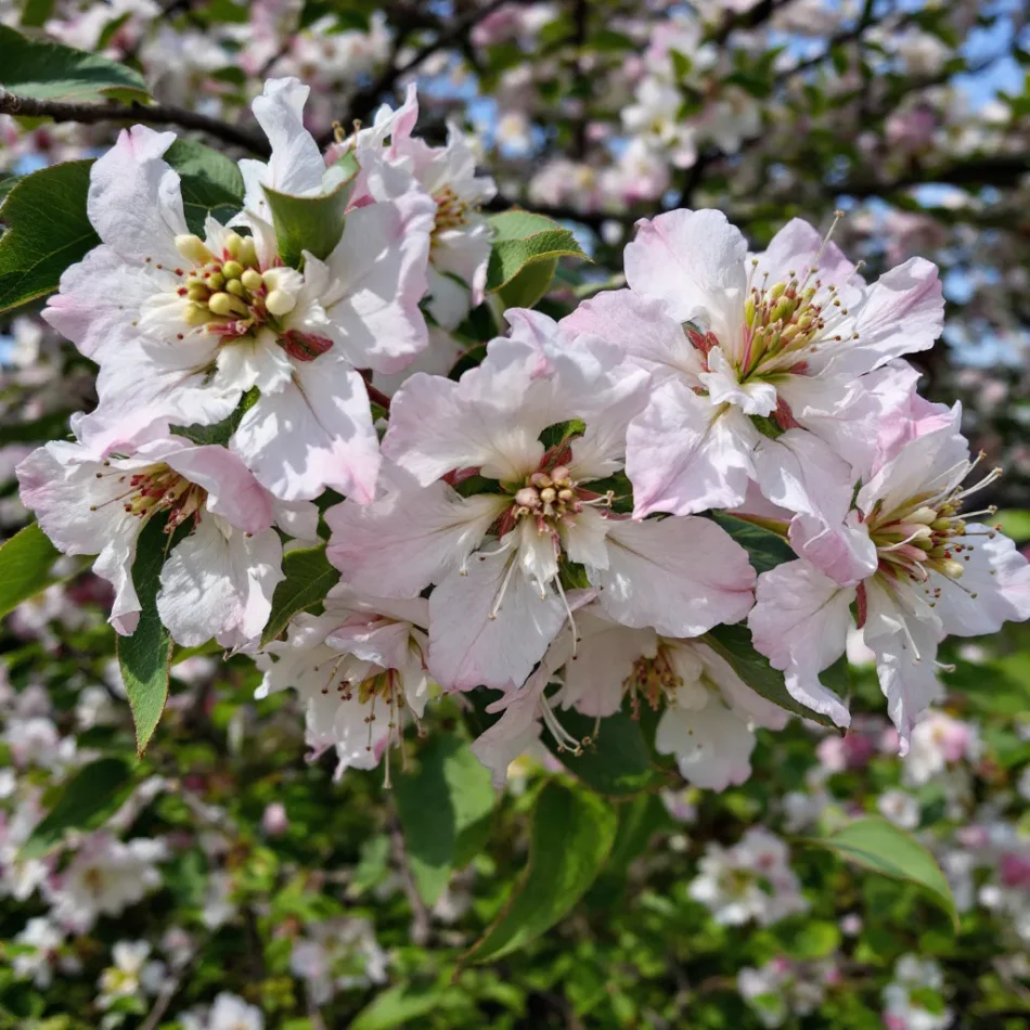 - Žiedai: Smulkūs, dažniausiai balti ar rausvi, susitelkę į vešlius žiedynus.